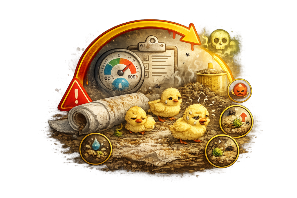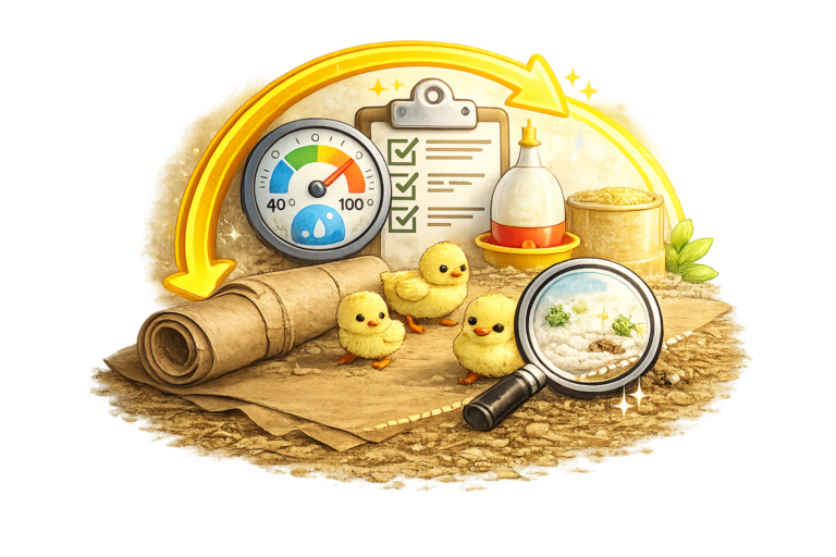 Quando o material não absorve corretamente ou perde resistência, surgem problemas silenciosos: excesso de umidade, acúmulo de sujeira, aumento de contaminação e maior estresse das aves.